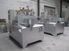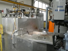 AGH型燃氣式鋁合金保溫爐,是本公司最新設計制造的具有國際先進水平的高性能鋁合金專用保溫爐,具有結構簡單、熱效率高(配有高效排煙熱量回收裝置比常規燃氣保溫爐更省能源)、爐內氧化物少、連續使用壽命長、自動化程度高等優點。由于使用了低過剩空氣系數平焰燃氣燃燒器,火焰輻射面積大、爐膛氧含量低,有效的降低了氧化燒損、提高了加熱效率。燃燒器還帶有爐膛煙氣引射器,通過調節,可以使的爐膛保持合適的壓力??刂乒駧в袖X液和爐膛氣氛溫度雙重控制,以鋁液溫度為主控,爐膛氣氛作為超溫限制,確保了在一定的爐膛溫度下,精確控制鋁液溫度,保護了爐膛耐火材料,減少了爐膛內鋁液的高溫氧化燒損。