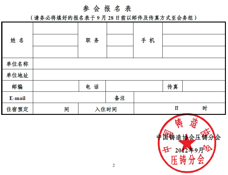 承辦單位:中國鑄造協會壓鑄分會