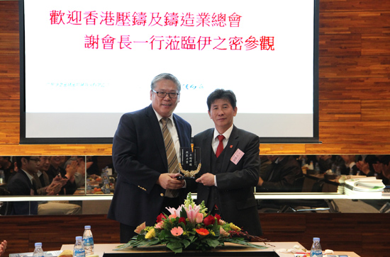 伊之密董事總經理甄榮輝(左)向香港壓鑄及鑄造業總會謝國夫會長(右)贈送牌匾