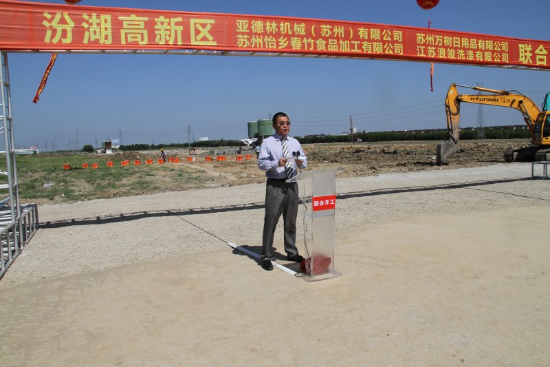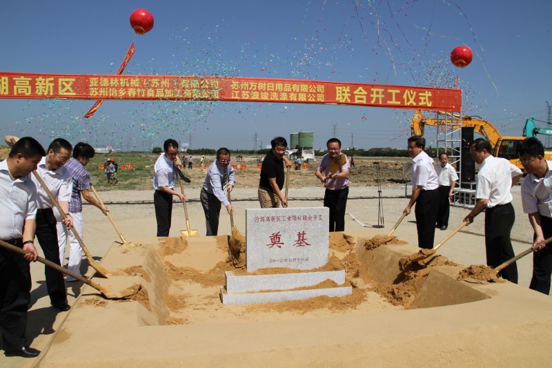 2013年7月18日,蘇州吳江汾湖高新技術產業(yè)園區(qū)舉行工業(yè)項目聯合開工典禮,亞德林機械(蘇州)有限公司、蘇州萬樹日用品有限公司、蘇州宜香春竹食品加工有限公司、江蘇浪竣洗滌有限公司四個項目聯合開工,項目投資總額達到11億元。