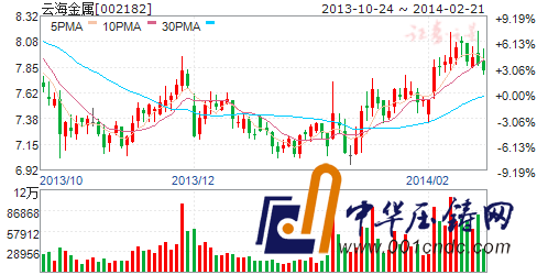 2月20日晚間,云海金屬(002182)公告了2013年度業績快報。2013年公司實現營業收入372,029.53萬元,同比增長6.52%;歸屬于上市公司股東的凈利潤2,791.76萬元,同比增長40.73%,主要原因是,鎂合金銷量增加,公司的全資子公司利潤增幅較大。