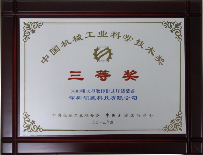 近期,中國機械工業科學技術獎評審委員會聯合中國機械工業科學技術獎管理委員會,表彰了中國機械工業科學技術獎獎勵項目三百多項。深圳領威科技有限公司憑借融入了多項壓鑄技術創新成果的“3000噸大型數控臥式壓鑄裝備”榮獲“中國機械工業科學技術獎三等獎”。