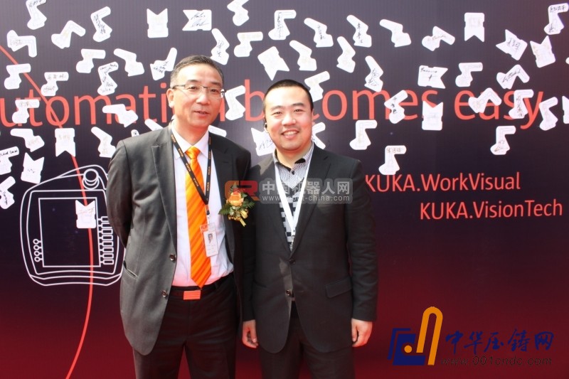 庫卡機器人中國首席執行官孔兵與中國機器人網首席執行官趙勇合影