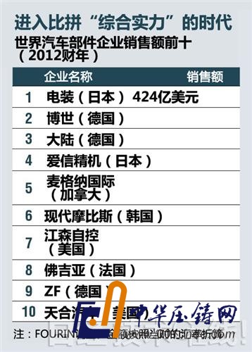 右表給出了全球銷售額排名前十的部件企業(yè),日本企業(yè)只有電裝和愛信精機(jī)榜上有名。