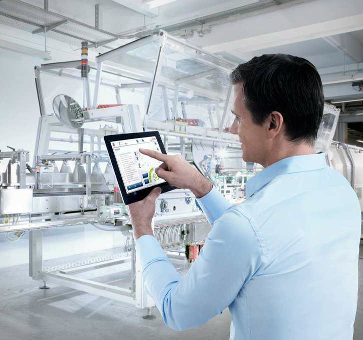 圖 4 為力士樂設想的將來的工廠,全自動車間,技師帶著平板電腦,利用無線網絡,與各設備聯絡,了解情況,調整狀況。