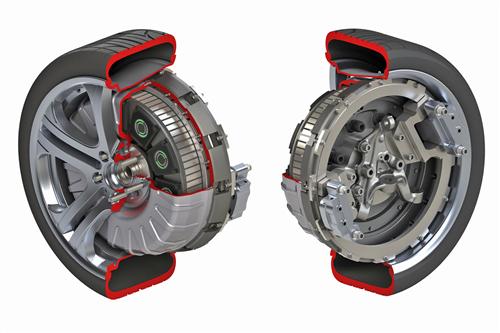 而若采用輪轂電機(jī)的布局,則可以省去動(dòng)力總成中的大部分組件,例如發(fā)動(dòng)機(jī)與變速箱。輪轂電機(jī)直接安裝在車輪內(nèi)部。米其林和汽車公司Venturi在2010年合作推出了一款Venturi Volage概念車,其中就采用了輪轂電機(jī)方案,米其林將其稱為主動(dòng)輪系統(tǒng)(Active Wheel System)。該系統(tǒng)的強(qiáng)大之處在于,車輪內(nèi)不僅有電機(jī),甚至連電子制動(dòng)系統(tǒng)、主動(dòng)懸架系統(tǒng)也都包含在內(nèi)。
