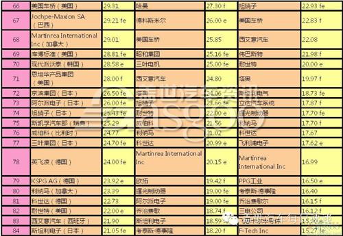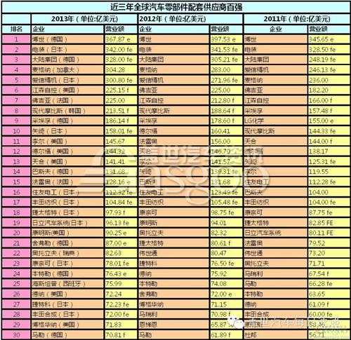下表為近三年全球汽車零部件配套供應商百強名單: