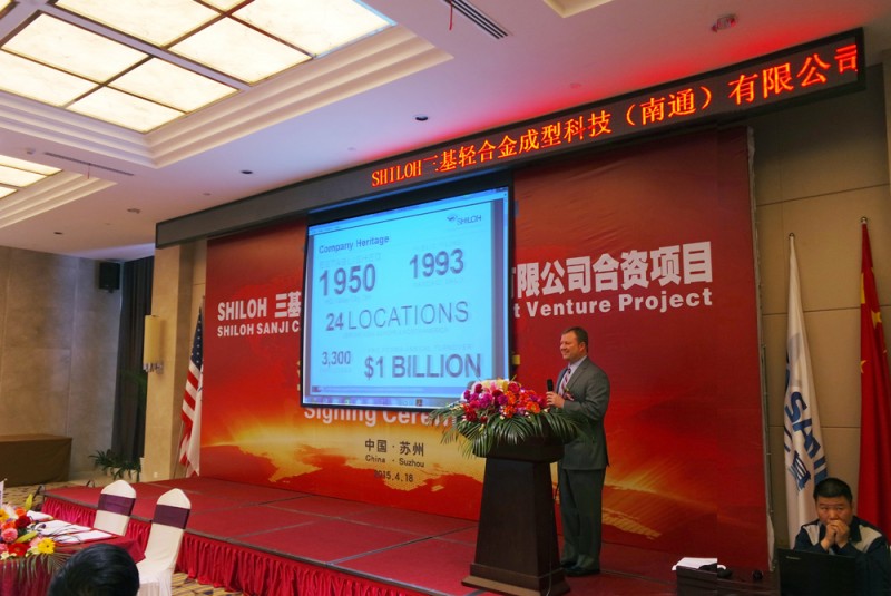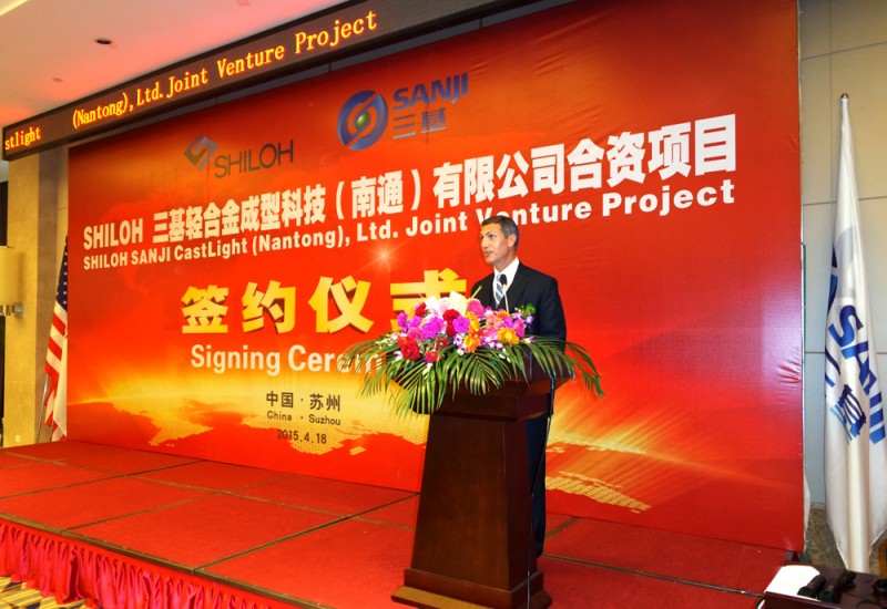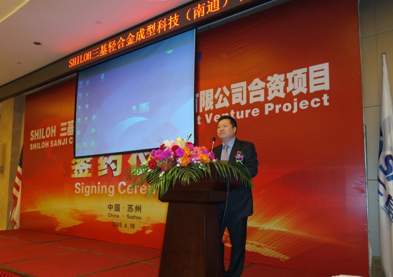 4月18日,SHILOH 三基輕合金成型科技(南通)有限公司合資項(xiàng)目簽約儀式在太湖之濱的蘇州頤舍溫泉酒店五樓宴會(huì)廳隆重舉行。