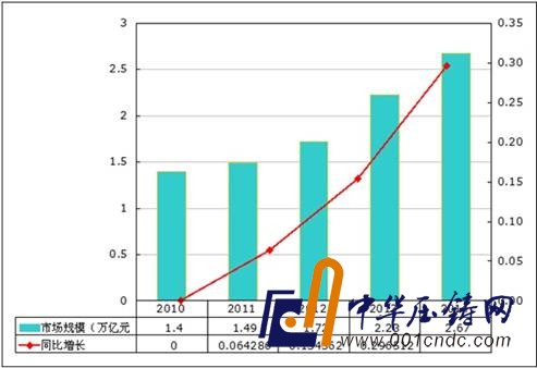 圖表1 2010-2014年我國汽車零部件市場規(guī)模及增速