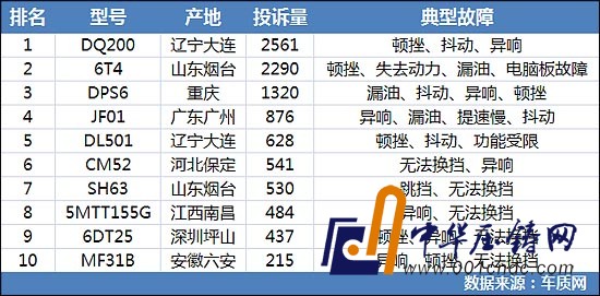 數(shù)據(jù)顯示,自動變速箱因?yàn)樽陨硖攸c(diǎn)更容易出現(xiàn)故障,雙離合變速箱尤其突出;從故障現(xiàn)象來看,抖動、頓挫、異響以及無法換擋問題成為最典型故障。消費(fèi)者在選擇高知名度合資品牌自動擋及自主品牌手動擋車型時(shí),應(yīng)格外留意以下各型號變速箱。