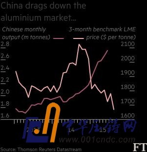 美國最大的鋁材生產商美國鋁業(Alcoa)估計,由于中國的出口,今年全球鋁過剩將達到76萬噸——足以制造1.6萬架波音747(Boeing 747)飛機。由于鋁價下滑了14%,美國鋁業的股價今年已下跌37%。