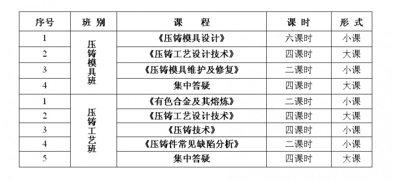本次夏季培訓班同時舉辦:“壓鑄模具班”、“壓鑄工藝班”共兩個班。這兩個專業班既具有明晰的專業分工和特點,又相互銜接、影響,互為關聯。同時舉辦培訓班,更方便學員的“選修”學習。