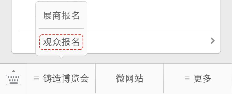 2.微信平臺工具欄點擊“鑄造博覽會”—“觀眾報名”