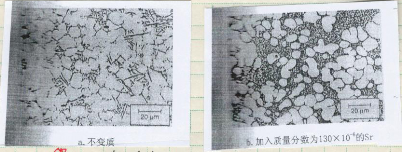 從圖3的鍶的變質效果看出這種變質后共晶硅的形態是高塑性所盼求的。