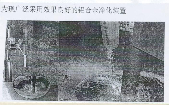 由于車體壓鑄結構件對力學性能的要求,決定了它必須通過熱處理來實現,而壓鑄件的熱處理特別是固溶處理,對合金的凈化和真空壓鑄是有特殊要求的,故對車體結構件合金液處理既要除氣同時也要除渣,必要時尚需加熔劑處理。試驗表明,鋁液中AL2O3的夾渣對精煉中的氫氣有極強的吸附作用,將形成吸附核心,使其難于去除,凈化處理的目的就是兼顧其雙重作用,凈化處理的下圖裝置時間證明是有效的。