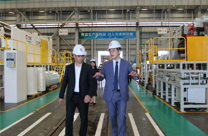 森萍科技董事長冷洪偉一行參觀力勁大型智能壓鑄單元總裝車間。