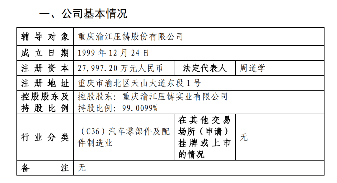 按此計算,渝江壓鑄最快將于11月做好上市申請文件準備。