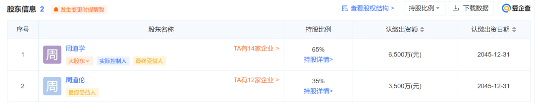 再一步往上穿透,渝江壓鑄實業(yè)股東為周道學(持股65%)、周道倫(持股35%)兩人。