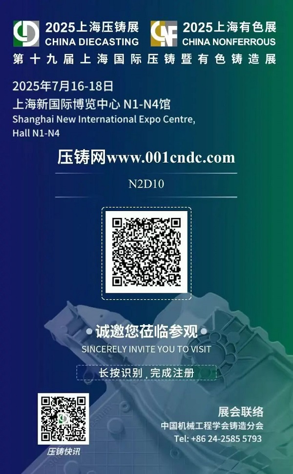2025年7月16日-18日,中國上海,一年一度的壓鑄行業盛會:第十九屆上海國際壓鑄展暨有色鑄造展(CHINA DIECASTING & CHINA NonFERROUS 2025)在上海新國際博覽中心N1 - N4館盛大啟幕。本屆展會以“新動能·新要素·新效能”為主題,吸引了全球580余家產業鏈上下游知名企業參展,這場匯聚全球鑄造精英的頂級平臺,將再次見證行業前沿技術的創新突破與產業升級的蓬勃態勢。