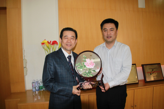 昆山市政府領導向力勁集團創始人劉相尚先生贈送禮物,左為劉相尚先生,右為昆山市市長路軍先生